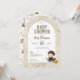 Fira din lilla trollkarl på väg med denna förtrollande Harry Potter-baby shower-inbjudan med Harry själv. Denna charmiga design inkluderar en bedårande illustration av Harry Potter i sina Hogwarts-rob, ridande på sin kvast och redo för magiska äventyr. Bakgrunden är strödd med färgglada stjärnor för en touch av nyckfullhet. Eleganta och lekfulla typsnitt visar vackert dina anpassade detaljer, inklusive hedersgästens namn, datum, tid, plats, RSVP-information och gåsteregister. Den unika välvda formen på inbjudan skapar en saga-känsla, medan baksidan visar ett roligt mönster av ikoniska symboler från trollkarlsvärlden, såsom spökböcker, trolldrycker, kittlar och magiska varelser. Perfekt för alla Harry Potter