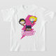 Kolla Chibi Supergirl, Chibi Woman och Chibi Batgirl samlade runt en rosa Justice League-logotyp framför en rosa blixt.