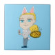 en katt-öron-stjärtad chibiflicka som serverar pizza