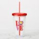 Kolla Chibi Supergirl inuti ett pinghjärta som representerar "O" i den här "KÄRLEK" staplade logotypen.