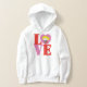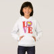 Kolla Chibi Supergirl inuti ett pinghjärta som representerar "O" i den här "KÄRLEK" staplade logotypen.
