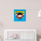 Kolla upp Chibi Superman som flyger i molnen med sin toppen hjälte namn-overhead och den röda polkameraformen bakom honom.
