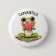 A cartoon of a chibi frog holding a heart. Cute chibi toad with a touch of romance. Add a name to this button in the personalize area.