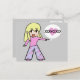 Cute Anime Kawaii Blonde Girl med Text Bubble är ett sött rosa hjärta med xoxo hugs och kisser. Grått eller färg bakgrund. Rosa Shirt och Lila Byxor.