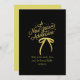 Elegant svart nyårskort med frasen ”A New Year Adventure” skriven med lysande guldbokstäver. Under meddelandet sitter en delikat guldbåge som ger en förfinad, festlig touch. Den övergripande designen känns modern, lyxig och perfekt för att fira nya början och stilfulla högtidliga hälsningar.