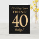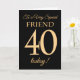Chic 40:e Guld-effekten på Black, Friend Birthday Kort