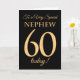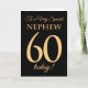 Ett 60:e födelsedagskort i chic för ett "mycket Speciellt Nephew", med nummer 60 bestående av guld-effektnummer och ord "Nephew" i guld, med svart bakgrund. Det inre budskapet, som man kan ändra om man vill, är "Grattis på födelsedagen"