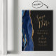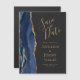 Det moderna spara datum magneter-kortet i elegant har en marin blå vattenfärg som ruttnar gräns med faux guld glitter. Anpassa enkelt guld färgad-texten på mörkens kol-grått-bakgrund.