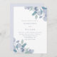 Den här enkla och chic bröllopsinbjudan innehåller vackra blåa vattenfärger och klassisk typografi. Baksidan är ett söt pastellpulverblått.
