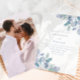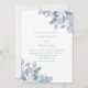 Den här enkla och chic bröllopsinbjudan har vackra pulverblåa vattenfärger och klassisk typografi. Baksidan har ett foto på en fullt.