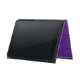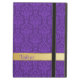 Elegant iPad Air fodral, med byggt i stativ, utförd i underbar lila på lila dammmönster. Grafik med färgband i guld, över grund, har redo för lila av anpassningsbar för att anpassa sig.