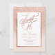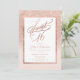 Ett modernt typsnitt för skript av söt chic och elegant faux ro guld glitter duschmbre med pastel rosa färg block Sweet 16 födelsedagsfest inbjudan med ro guld som bleknar på mönster med rosa elegant och guld ram.