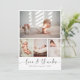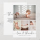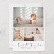 Tack till vänner och föräldrar med vårt eleganta, snyggt, moderna fotohälsningskort. Det är perfekt att uttrycka tacksamhet till era gäster i babyduschen för deras vänliga gåvor, kärlek, och stöd. Contemporaryns design har en kollage med fyra anpassaden, med en huvudbild i mitten och tre mindre nedan, kompletterad med elegantens moderna typografi. På baksidan kan du lägga till ett tackmeddelande för personligen för att göra den verkligt unik. Med personaliseringsknappen kan du enkelt ersätta bilderna och redigera texten så att den passar stil. Gör det här vackra kortet till ditt eget genom att lägga till dina detaljer! Besök vår butik om du vill ha fler produkter, samlingar och anpassningsbar frimärke.