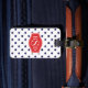 Chic blå och vit polka dots mönster monogram bagagebricka