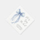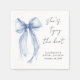 Eleganta servetter till din bröllopsfest med en vattenfärg av en blå coquette rosett, "Hon knyter knuten" i en chic kalligrafi skrift, och brudens namn och festdatum i enkel bokstav.