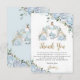 Anpassa detta vintage blomstermönstrade prinsess tackkort med din egen textning enkelt och snabbt, tryck bara på knappen anpassa för att ytterligare ändra och formatera stil och placering av texten. Detta eleganta kort har vintage ljusblå franska rosor och en prinsessa pumpa vagn. Matchande artiklar finns i vår butik! (c) The Happy Cat Studio.