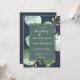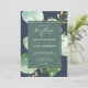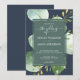 Elegant bröllop bjuds in med en grönt eucalyptus botaniskt utformat på en marin blå bakgrund. Lägg bara till dina uppgifter om bröllop. Om du behöver hjälp eller matchande produkter kontaktar du oss genom vår butik.