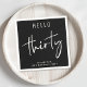 Öka 30års födelsedag party med dessa svarta blöjor av chic som har "hej trettio" i en blandning av enkla vita bokstäver och ett modernt vitt skript.