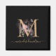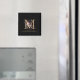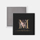Chic Black and Guld Script Blommigt Monogram Magnet
