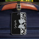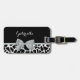 En chic svart och vit giraffe-tryckbagagemärke med en elegant silver grått-band som är fastsatt i en femininin båge. Anpassa den här gigantiska utskriften genom att lägga till ditt namn. Platt utskriven bild, inte verklig båge.