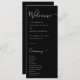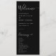 Det här ceremonin i chic bröllop innehåller ett vitt skript på en fet svart bakgrund för en slående minimalistisk design. Det gör det enkelt för anpassadet att inkludera alla viktiga bröllop-detaljer som parets namn, bröllop, serviceorder, brudens sida och ett valfritt minnesavsnitt. Perfektens snyggt rör vid för ett modernt firande i bröllop. Berätta om du behöver hjälp med att anpassa den här designen. Matchande objekt är tillgängliga.