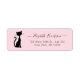 Returetiketter för ljus och rosa med en chic återsvart katt med en rosa nos och krage och ditt namn i ett snyggt-trendig-skript med dekortecken.