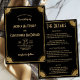 Chic Black Guld Art Deco Blommigt Allt-i-ett-Bröll Inbjudningar