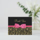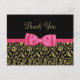 En chic svart och en blommigt i guld tackar dig för att du har ett vykort med en chic shock rosa satängbog i stil. Anpassa den här eleganten genom att lägga till ett personligt meddelande. Platt tryckt bild, inte metallisk eller verklig bog.