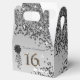 Chic Black och Guld Glitter faller på elegant silver, grått med Black Rosett band. Unikt svartvitt och guld nummer 16.