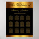 Den här elegantens svarta och guld-sätesdiagram har kalligrafi av guld med briden och gruppens namn gäst namn för att anpassa sig med faux guld gräns på svart bakgrund. Passar upp till 12 bord. Designad av Susan Coffey.