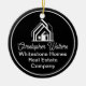 This professional realtor Christmas ornament is custom made with your real estate company name under the modern cursive script and house image. These chic black realty business promotional gifts feature a house logo image for home builder or realty agent company marketing.