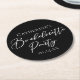 This elegant black bachelorette party coaster features chic white typography for a modern bride who is going to have an upscale event with her bridesmaids. Trendy personalized minimalist bachelorette party decor.