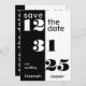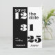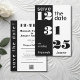 Bold and sophisticated, this save-the-date card features a striking split-panel design in classic black and white. The date is dramatically emphasized with large, stylized retro-chic numbers, ensuring your guests immediately recognize this incredibly important event.