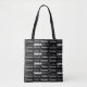 This modern personalized black tote bag is customized with your name in 9 different beautiful fonts. A cool personalized gift with white typography for a trendy woman.