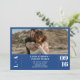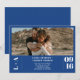Modern enkel, minimalistisk initialer 1-foto bröllop. Lägg till ditt par foto, initialer eller monogram med ett enkelt fet skript, ren chic blå och vit.