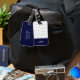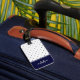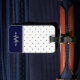 Den här snyggten och chicens bagagemärkning har marinblått och vitt polka dots, med gräns i marinflottan. Anpassa med ditt namn och inledande.
