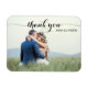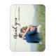 Trendigets typografi, bröllop fotot tack vare din magnet. Med modern och snyggt innehåller anpassad design den rörliga texten "tack" i stor, elegant, skript, redigerbar text fält för parets namn och platshållare för ett fullt-utfallsfoto. Anpassa den här designen så att den matchar stil genom att klicka på Anpassa för att gå till designen verktyg och lägga till din egen anpassningsbar eller information.