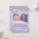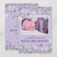 Detta vackra, trendiga födelseanmälningskort har ett foto av ditt barn, inramat med mörklila och vita blommor. På baksidan av kortet anpassar du till din information. Maila mig på JMR_Designs@yahoo.com om du behöver hjälp eller har några speciella önskemål.