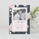 Chic Blommigt Blått Bröllop-foto Spara datum Spara Datumet