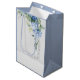 Chic och elegant - blå väska för väskor med vacker blommigt tillsammans med namn, evenemangsdatum och lite "tack". Det här vackra vin i kväll kan vara personlig med namn och dejt. Snyggt, elegant med ungdomliga undertoner, den här designen tillför just det speciella något till dina brudens sida-favoritgåvor. Skål för dig!