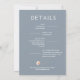 Allt i en dammig, blå och vit bröllopsinbjudning finns i din ceremoni på framsidan och mer information på baksidan i chicens vita bokstäver. Fina vattenfärgblommor är vita och grönt vattenområden, rosa och grädde ro, daisy, små stammar och löv. MATCHING-objekt i vår butik.