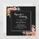 Fin rosa och rödfärgade blommor och elegant grönt på svart högdagrar dessa brunch och bubblande inbjudningskort för möhippa med texten i chic. ***SQUARE storlek kräver extra-porto. MATCHING-objekt i vår butik.