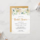 Vattenfärgade blommigtar i vita nyanser och grönt med guld-accenter och konetti inbjudningskort för möhippan. Checka ut samlingen (se länken under huvudbilden) och kontakta designern för att begära objekt som inte visas.