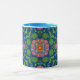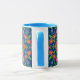 En söt Kaffe Mugg, med ett blått läpphandtag och ett färglöst Blommigt Rangoli Mönster på en djup blå bakgrund som du kan ändra om du vill. En del av Posh & Painterly 'Rangoli'-samlingen, kommer mönster att passa in i mugg.