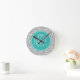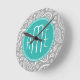 Chic blommigtgråttPaisley mönster & blåttMonogram Rund Klocka