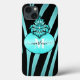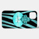 Snyggt, chic ljusblå och svart zebra rand mönster-bakgrund med en damm inslag i mitten ovanför en namn- och monogrammall.