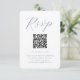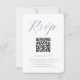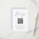 Det här moderna svarskortet i bröllop har ett ställe för din QR-kod så att gästerna enkelt kan osa på din bröllop webbplats. Framsidan har en enkel och ren, muterad blå kalligrafi-design med anpassningsbarnas qr-kod. Det minsta ryggstödet är fast pastellpulverblått.