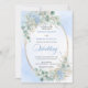 Make your special day unforgettable with this elegant watercolor wedding invitation, thoughtfully designed to shine with Zazzle’s premium print quality. Featuring soft pastel blue hydrangeas, delicate eucalyptus and greenery foliage, and a refined gold glitter oval frame, this invitation blends timeless romance with modern sophistication.