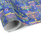 Den här helgdag har en mönster i chicen guld, grönt och lila menorah och guld Star i David med blå bakgrund. Designad av världsberömd konstnär Tim Coffey.