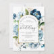 Chic Blue Navy All in 1 Budget QR Code bröllopsinbjudan. Hand målade en bröllopsinbjudan för blommigt i vattenfärg med blommor i skuggor av dammigt blått och marint blått med gyllene ram, modernt kalligrafi och QR-kod med detaljer i baksidan. Fin elegant vattenfärgsblommigt i en bröllopsinbjudan perfekt för bröllop och utomhussommartid i bröllop. Du kan anpassa ordalydelsen, teckensnittet stil, färg och storlekt framför och bakom kortet. Kontakta mig gärna om du vill ha matchande artiklar.